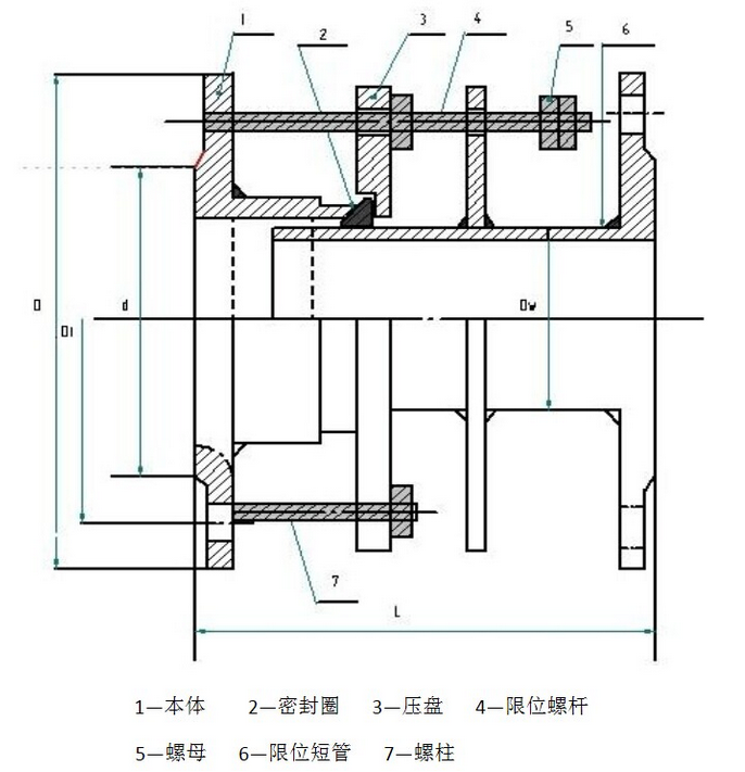 VSSJA-2(B2F)型雙法蘭限位伸縮接頭是在松套伸縮接頭原有性能的基礎上增設限位裝置,在大伸縮量處用雙螺母鎖定。管道在允許的伸縮量中可以自由伸縮,一旦超過其大伸縮量就起到限位,確保管道的安全運行,特別適用于有振動或有一定斜度及拐彎的管路中的連接。
