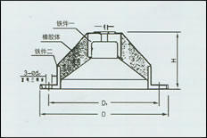 JGD-D1型橡膠剪切隔振器是由內、外鋼套和中間的合成橡膠組成,經硫化呈中空圓錐體,橡膠部分受剪切力,橡膠剪切隔振器具有較大的變形范圍和較低的固有頻率。橡膠剪切隔振器工作溫度范圍在-15℃~+60℃,溫度變化時,剛度也有所變化;阻尼比C/Cc≥0.07。JGD-D1型橡膠剪切隔振器對于水泵、壓縮機、通風機、發電機組、冷凍機、高精度儀器、中央空調等動力機械設備的積極隔振和儀器儀表的消極隔振、降噪,都有良好的效果。